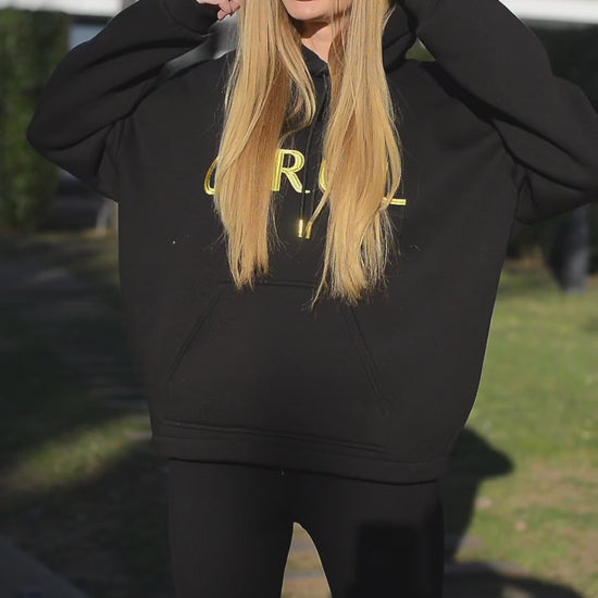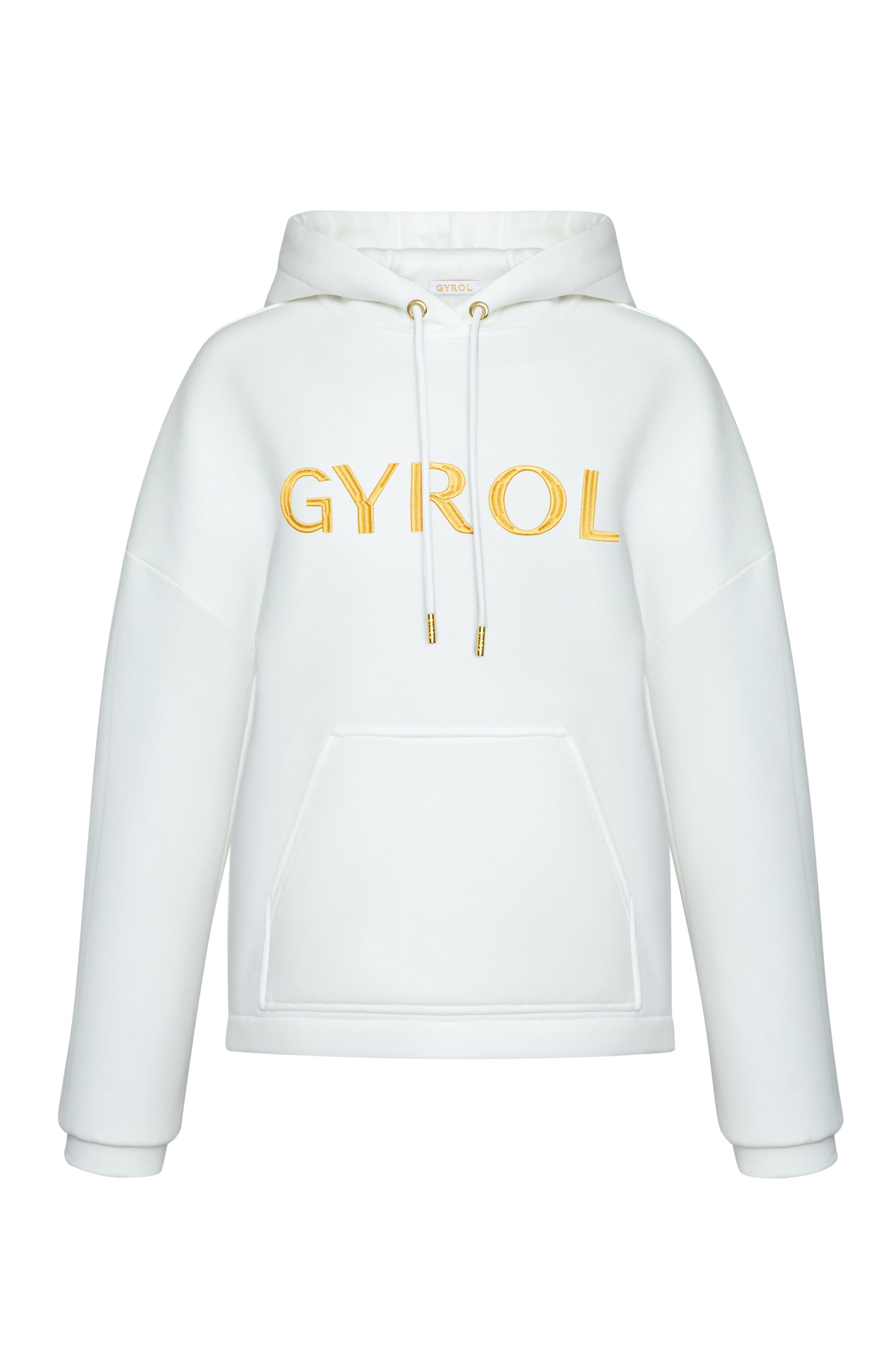 - Il logo GYROL, ricamato in un elegante filo dorato, aggiunge un tocco di lusso e rende la felpa unica e riconoscibile.